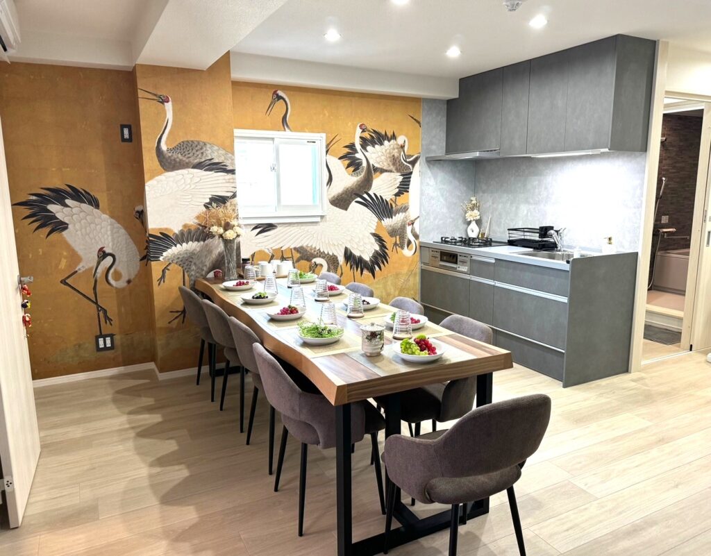 地下鉄新栄駅徒歩9分にある、K-ART Stayのメインルーム。3LDK/56m2/〜9人